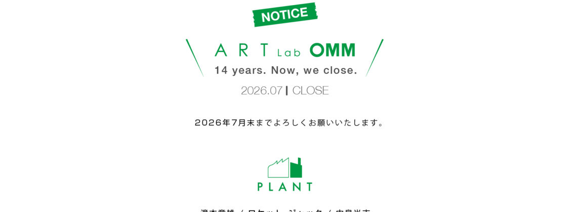 この度、2026年7月末に「ART Lab OMM」の閉店が決定いたしました。大阪・天満橋OMMにて、京阪建物株式会社(旧・株式会社大阪マーチャンダイズ・マート)直営スペース「ART Lab OMM」は、JAMWORKS・Art Yardがディレクションするというカタチで運営をしておりました。2012年にオープ…